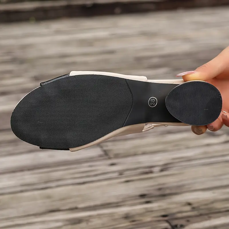 Simply, slip them on and snug your feet in place around the toe clasp for enhanced support.